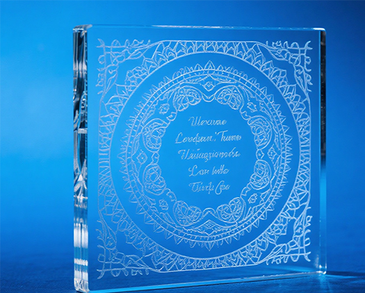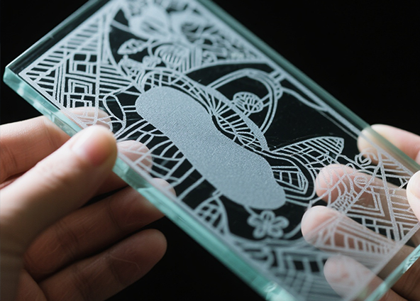 Un laser CO₂ est bien absorbé par la surface du verre et est couramment utilisé pour la gravure de surfaces. L'effet de gravure d'un laser CO₂ apparaît sous la forme d'un motif blanc dépoli, ce qui le rend adapté à la publicité, à la décoration artistique et au lettrage de cadeaux. Les lasers ultraviolets (UV), quant à eux, présentent une longueur d'onde plus courte et fonctionnent en mode « traitement à froid » avec une zone affectée thermiquement minimale. Les lasers UV sont capables de produire des lignes fines, des codes QR et des logos.